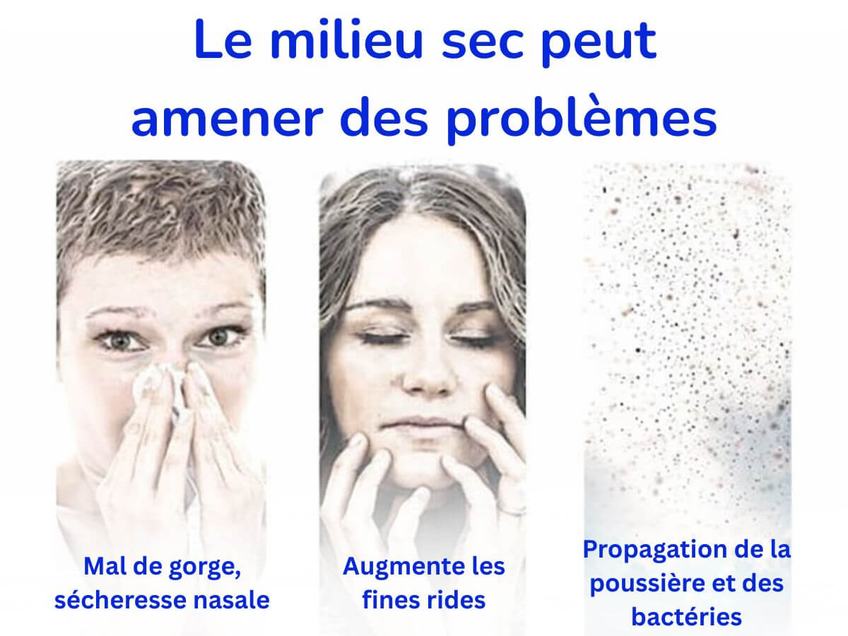 Dry air aggravates health problems such as colds, flu, asthma, chronic obstructive pulmonary disease (COPD), sinusitis and allergies.