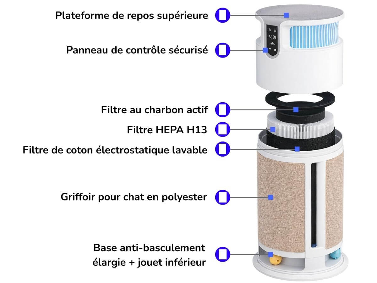 3. High-density activated carbon filter with deodorizing enzyme for pets: Absorbs volatile organic compounds such as second-hand smoke and various types of pollutant gases