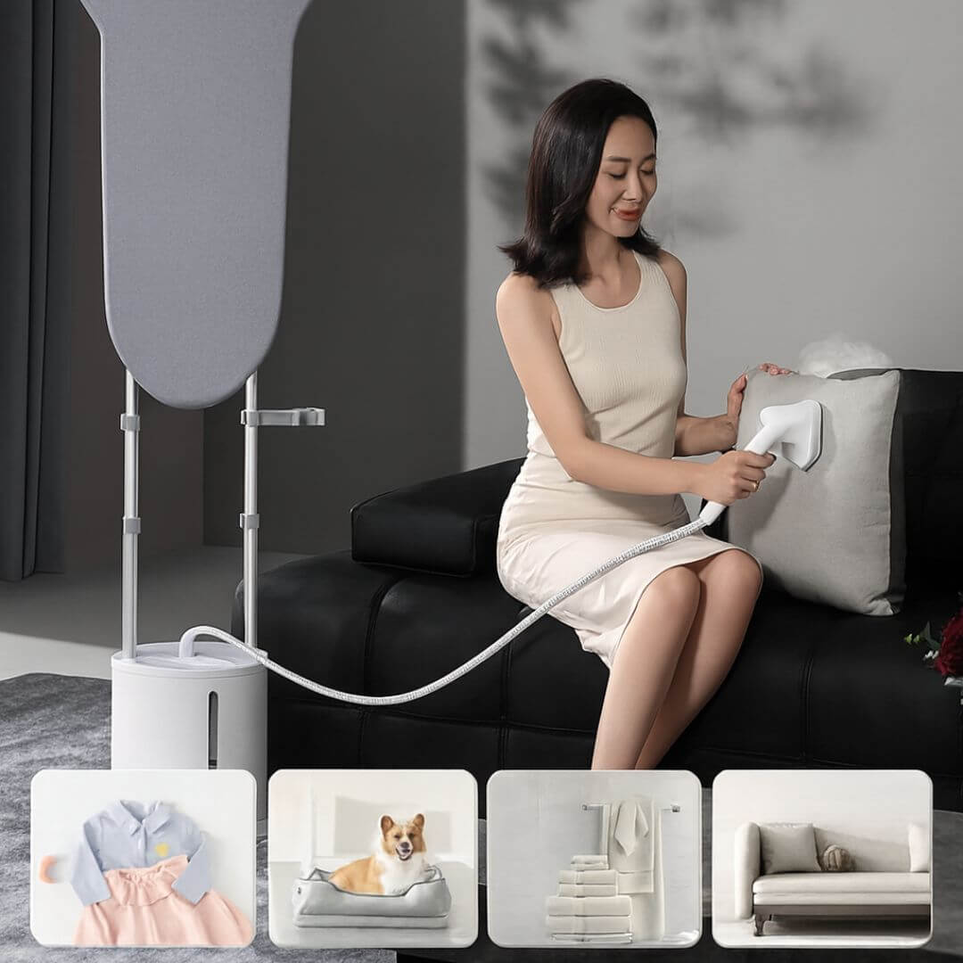 Smooth all wrinkles quickly with this high-performance garment steamer with an integrated adjustable support table.